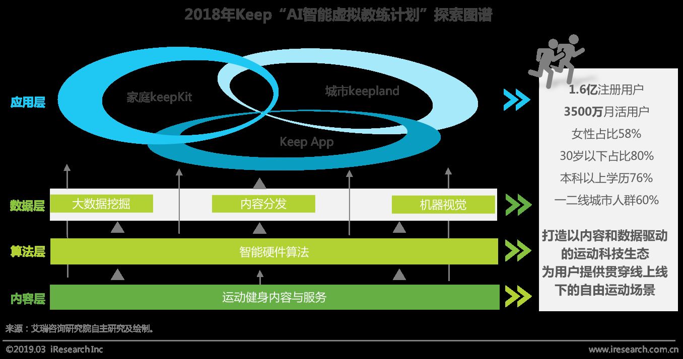 Keep目前拥有1.7亿注册用户,3500万月活用户,是目前用户规模最大、极具影响力的头部互联网运动科技平台。Keep为中国运动健身人群提供健身教学、跑步骑行、运动社交、饮食指导、电商购物等一站式运动解决方案,以海量运动健身数据为基础,运用人工智能技术赋能更多运动场景,构建更加完善的运动生态。2018年,Keep将把人工智能应用上升到战略高度,推出AI智能虚拟教练计划,推动智能化运动方式的落地。