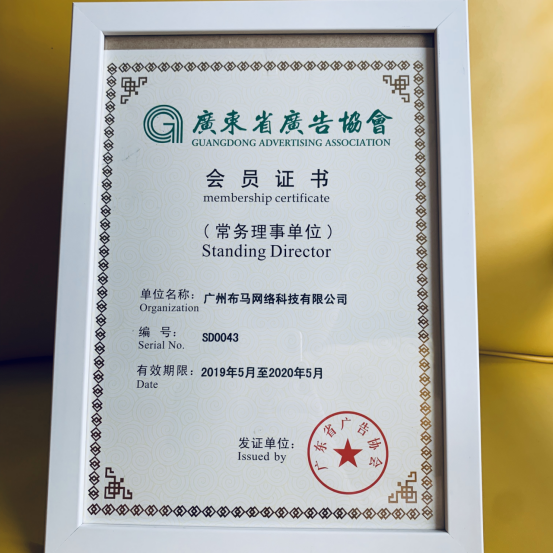 同时,布马网络"一站式网络营销服务"的营销理念,获得省广告行业的一致认可,广州布马网络科技有限公司在2019年获得广东省广告协会常务理事单位荣誉称号。布马网络以整合营销为主导、专业化广告服务为核心的营销服务商,致力为全国中小企业提供专业的网络营销服务,为客户创造价值。每一次的成长与创新,都只为可以做得更好。未来,布马网络将继续与广大中小企业携手同行,助力更多的中小企业和品牌茁壮成长!