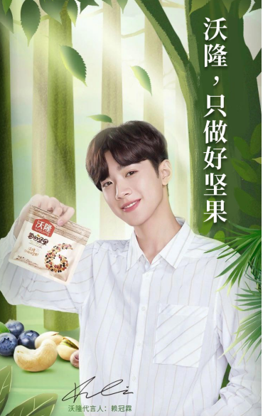 在《PRODUCE 101 》中,赖冠霖就以全民高票出道,更在回国后直接拿下热门IP剧《初恋这件小事》男主。他用不懈努力造就超绝魅力,这与沃隆认真务实、用心锤炼的品牌主张完美契合,以“健康、天然、活力”的偶像形象,将“沃隆,只做好坚果”的全新slogan更直接的传递出来。