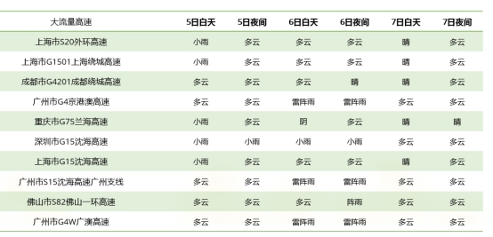 此外,根据高德地图交通大数据预测,全国车流量较大的高速主要分布在长三角、珠三角、成渝地区。尤其是上海S20外环高速、G1501上海绕城高速、G4201成都绕城高速、广州G4京港澳高速、重庆G75兰海高速、深圳G15省海高速、上海G15省海高速、广州S15省海高速广州支线、S82佛山一环高速、广州G4W广澳高速,预计成为清明假期交通流量十大高速。