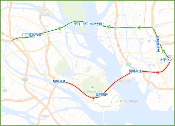《报告》显示,南沙大桥通车后,将在清明小长假期间有效缓解莞佛高速虎门大桥段的交通拥堵,预计缓解35%。根据历史交通大数据显示,莞佛高速坦尾互通-太平立交预计在4月5日9时-10时、4月6日13时至4月7日全天拥堵程度均较高。莞佛高速太平立交-坦尾互通在4月5日7时-14时、16时-18时,4月6日8时-16时,4月7日15时-16时拥堵程度较高。建议驾车出行游客考虑错峰出行,或绕行选择东莞虎门渡轮码头前往广州南沙,从太平立交向北走京港澳高速通过南沙大桥进入广州绕城高速。