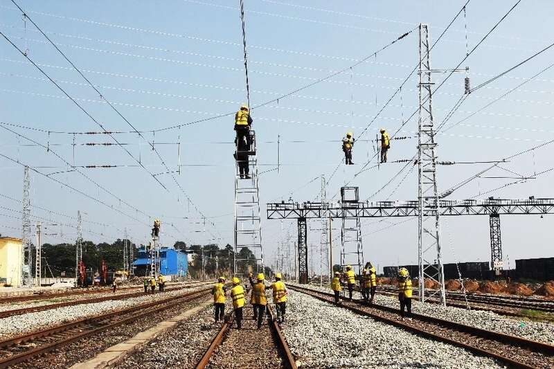 施工人员进行接触网专业施工。中铁电西安电化公司供图