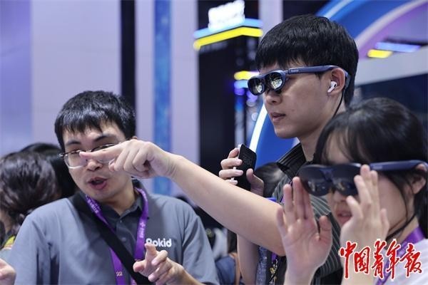 AR眼镜引得不少观展者试戴体验。中青报·中青网记者 谢洋/摄