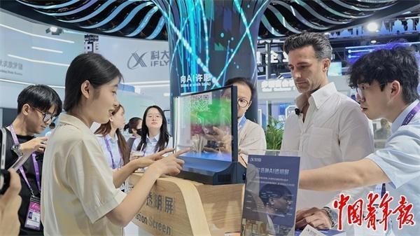 多语种AI透明屏让中外观展者无障碍交流。中青报·中青网记者 谢洋/摄