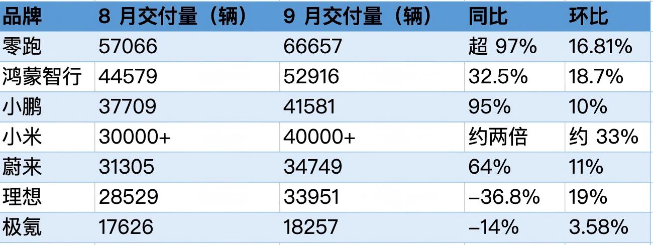 造车新势力交出了“金九”亮眼成绩单,均实现交付量的环比增长。