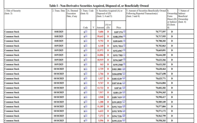 据证券时报报道,美东时间10月10日盘后,英伟达提交至美国证券交易委员会(SEC)的文件显示,公司CEO黄仁勋在10月8日至10日期间,通过20笔交易卖出22.5万股股票,套现逾4280万美元。而在10月1日至7日,他已连续五个交易日减持,累计套现超7024万美元。