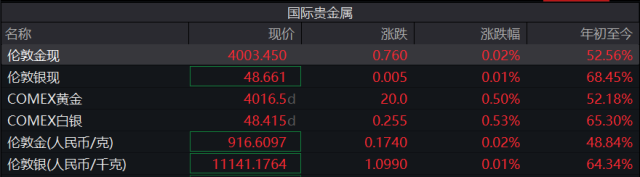 周一亚市早盘,金价应声下跌,现货黄金一度下跌0.6%至3970美元/盎司后出现反弹。截至发稿,伦敦现货黄金价格报4003.45美元/盎司,涨0.02%。