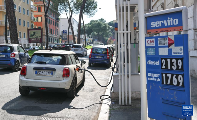 3月24日,市民在意大利首都罗马一处加油站加油。