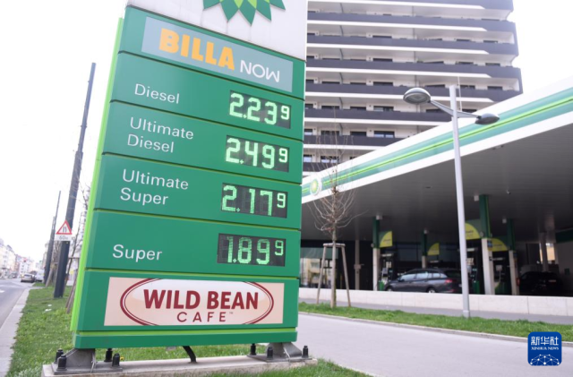 这是3月24日在奥地利首都维也纳拍摄的一处加油站的价目表。