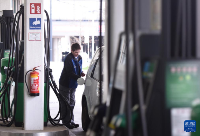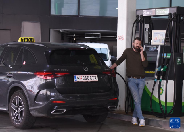 3月24日,在奥地利首都维也纳一处加油站,一名车主在加油。