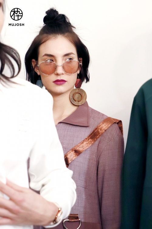 (纽约时装周模特佩戴木九十眼镜后台花絮)