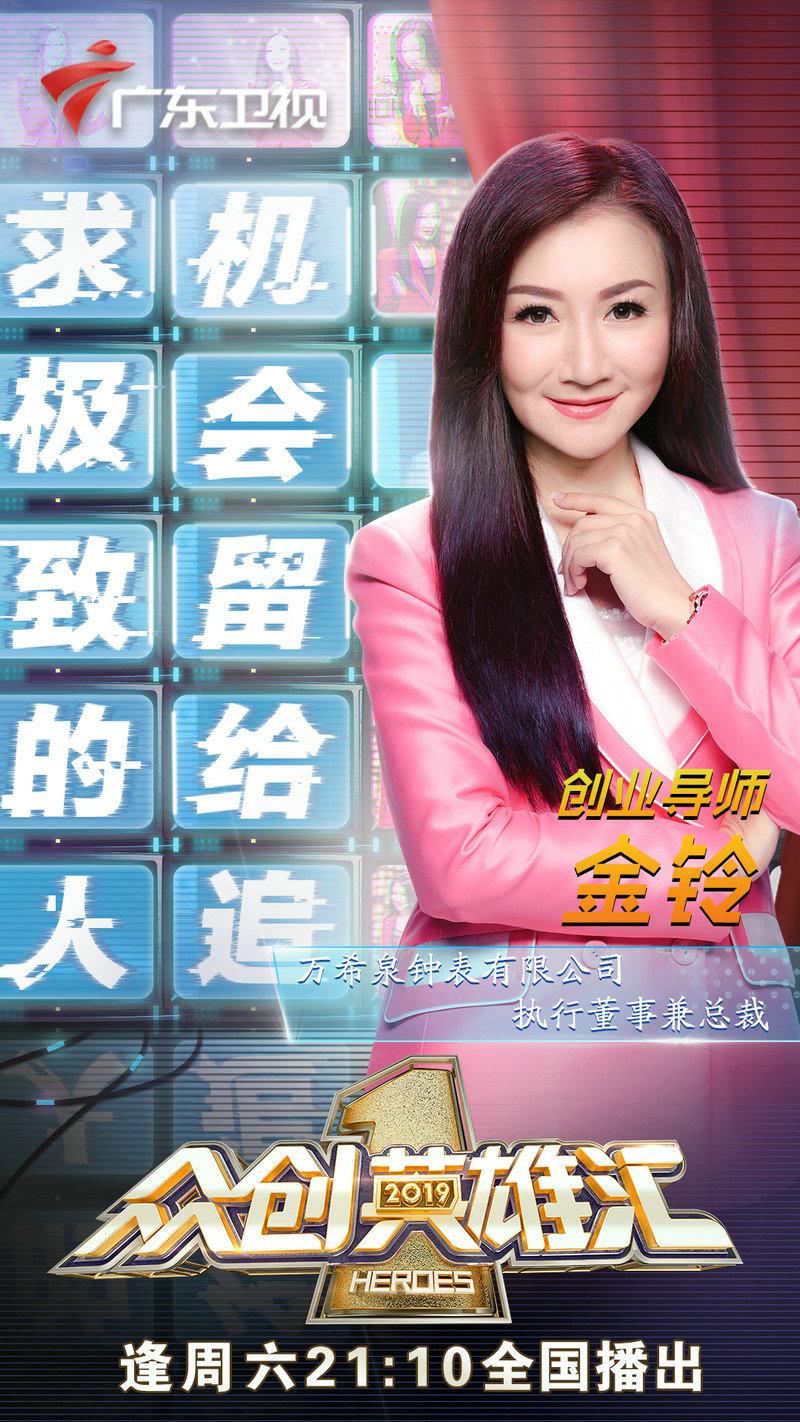 由广东省人力资源和社会保障厅与广东广播电视台联合打造的大型原创演播厅创业竞赛节目《众创英雄汇》从7月起每逢周六21:10在广东卫视火热开播。“金话筒”节目主持人、中国首位金槌拍卖师、香港万希泉钟表有限公司执行董事兼总裁金铃受邀出任节目的“创业导师”,与主持人兼作家乐嘉、当当网创始人李国庆、“樊登读书会”创始人樊登等多位行业大咖一起,为创业者们指点迷津。