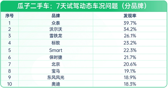 (图:瓜子二手车-7天试驾动态车况问题-分品牌)