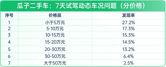 (图:瓜子二手车-7天试驾动态车况问题-分价格段)
