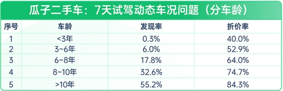(图:瓜子二手车-7天试驾动态车况问题-分车龄)