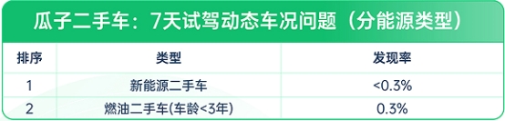 (图:瓜子二手车-7天试驾动态车况问题-分能源类型)