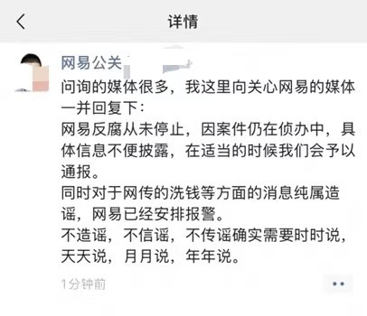 此外,就网传的洗钱等方面的消息,上述人士表示“纯属造谣”,对此网易已经安排报警。