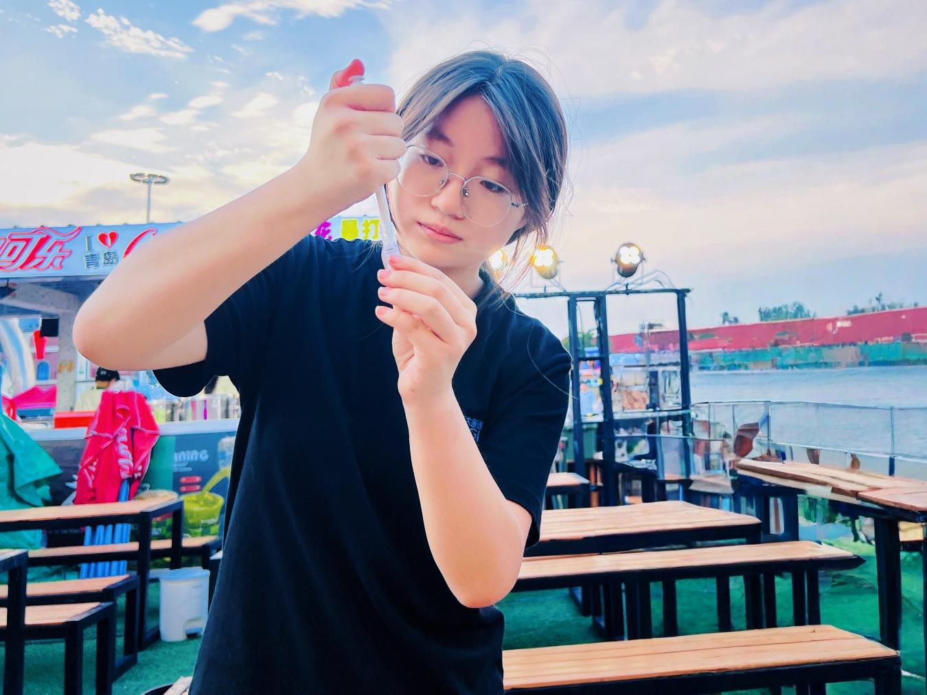 饮酒基因速测的工具是华大智造研发的“饮鉴-饮酒基因速测星盒”。“第一步是采样,过程非常简单并且无痛。”在青西金啤大篷门口的展台前,华大智造试验员李晨雅现场演示检测流程时说。