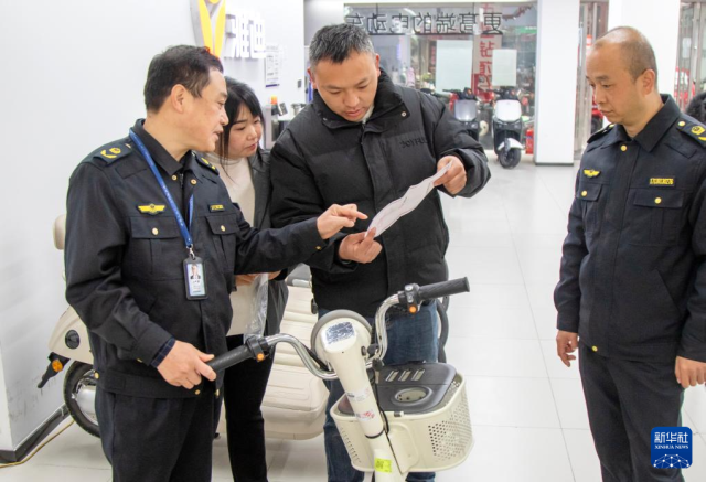 12月1日,湖北省恩施市市场监督管理局小渡船市场监督管理所的工作人员对辖区经销商销售的新国标电动自行车进行CCC认证标志和产品合格证专项检查。