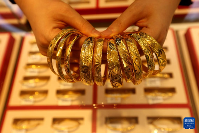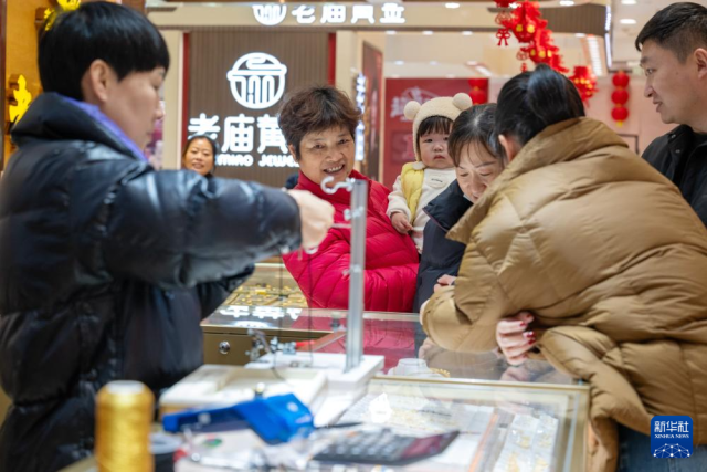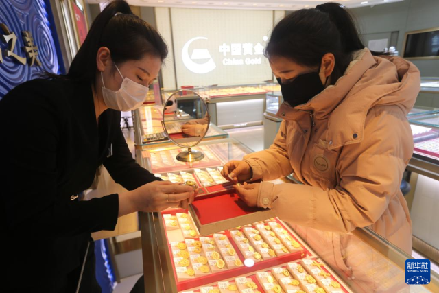 1月26日,市民在浙江省湖州市长兴县雉城街道一家商场选购黄金饰品。