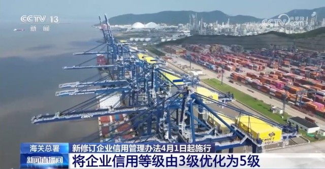 央视网消息:记者从2月12日海关总署举行的记者通报会上获悉,新修订的《中华人民共和国海关注册登记和备案企业信用管理办法》,将于4月1日起全面施行。《办法》从调整企业信用等级、建立失信修复和容错机制等方面做出优化升级。