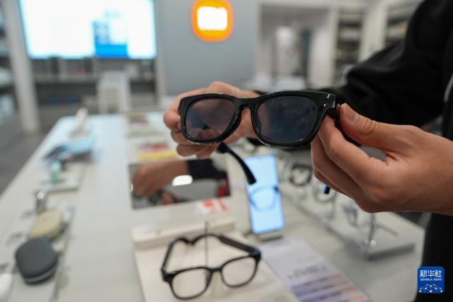 2月11日,在北京京东MALL双井店,一名销售人员在展示一款智能眼镜。2026年“新国补”首次将智能眼镜纳入补贴范围。