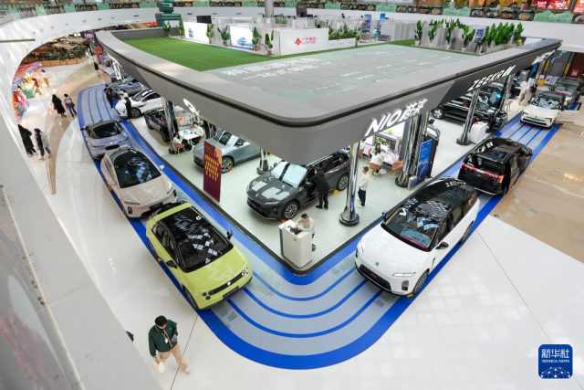 2月11日,在北京市朝阳区一个商场内,市民在了解新能源汽车。