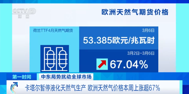 另外,因全球重要天然气出口国卡塔尔暂停液化天然气生产,欧洲天然气库存处于低位,作为欧洲基准的荷兰TTF天然气期货价格也大幅飙升,本周累计涨幅超67%