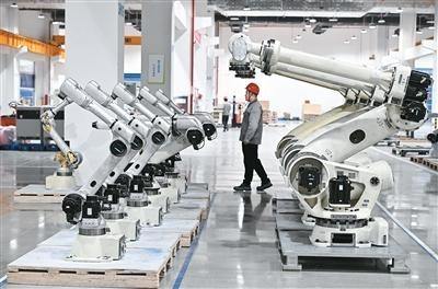 近日,在位于江苏省南京市江宁开发区的汇川技术南京基地生产车间拍摄的机器人产品。新华社发