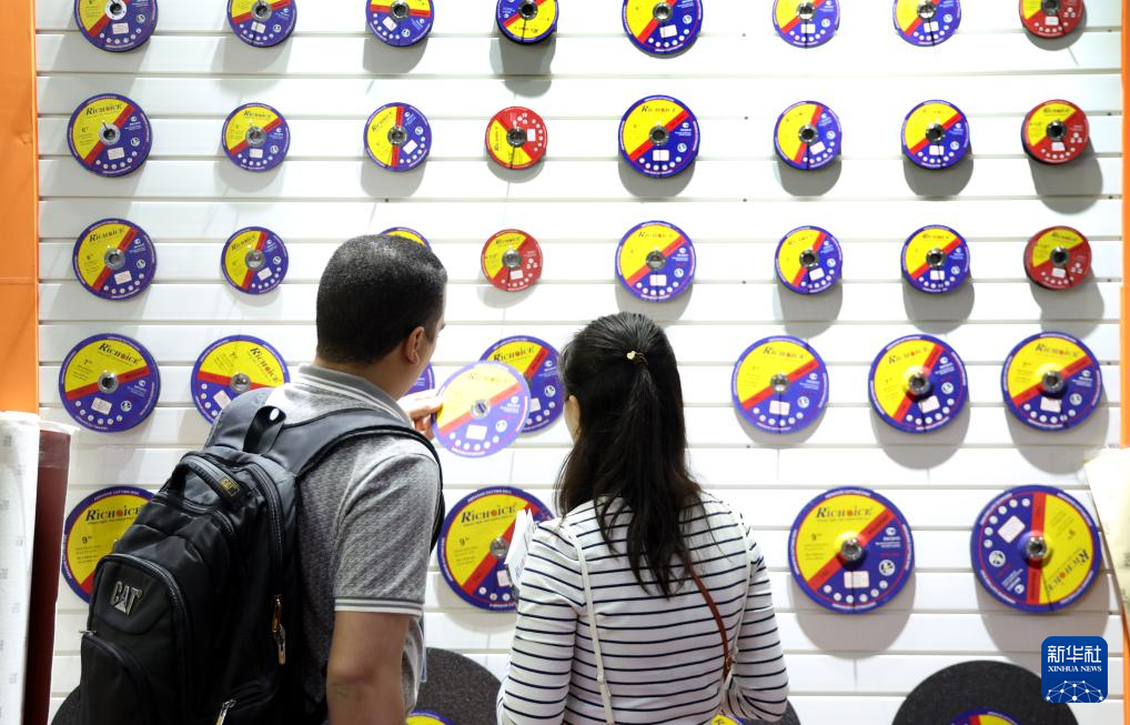 4月19日,采购商在广交会上参观选购磨砂轮。