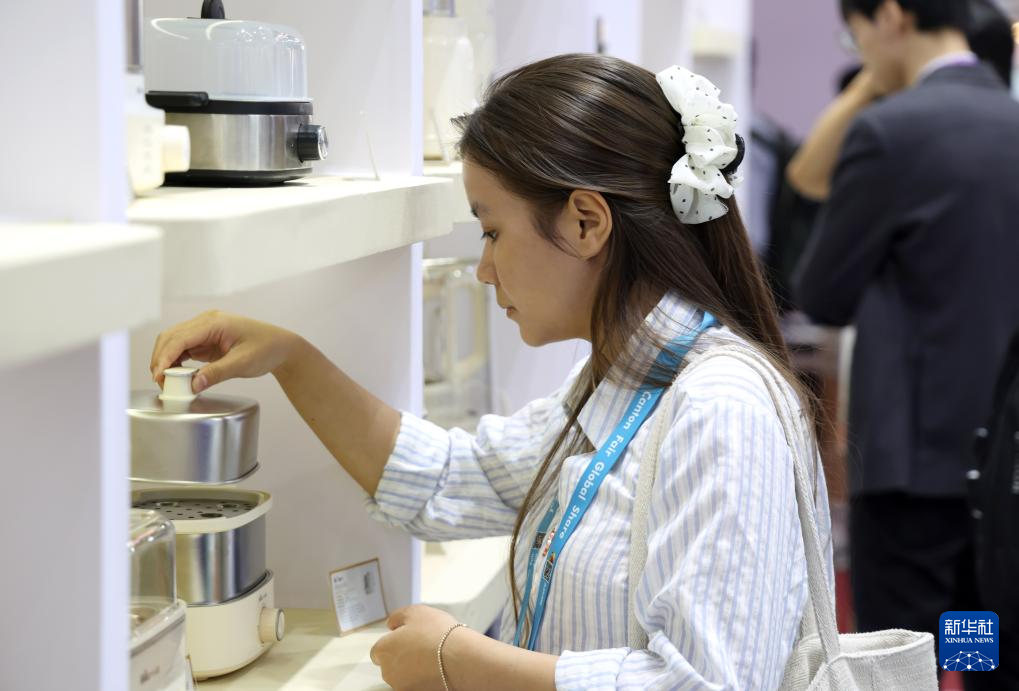 4月19日,采购商在广交会上参观选购小熊电器小家电。